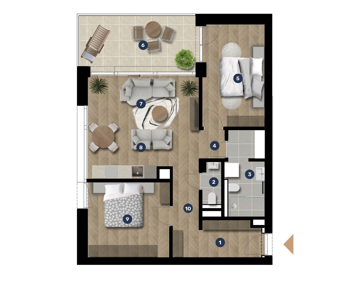 Az adatlapon megjelölt alaprajzi méretek vakolatlan falak közötti méretek, a kivitelezés során kismértékű méretváltozás lehetséges. Ezen dokumentációban közölt adatok a kiviteli tervek alapján kerültek megállapításra kizárólag tájékoztató jelleggel, nem minősülnek ajánlattételnek. Az alaprajzon feltüntetett bútorok tájékoztató jellegűek, azok rajzi elhelyezése nem feltétlenül tükrözi azok jövőbeni elhelyezhetőségét, illetve azok nem képzik a lakás részét.