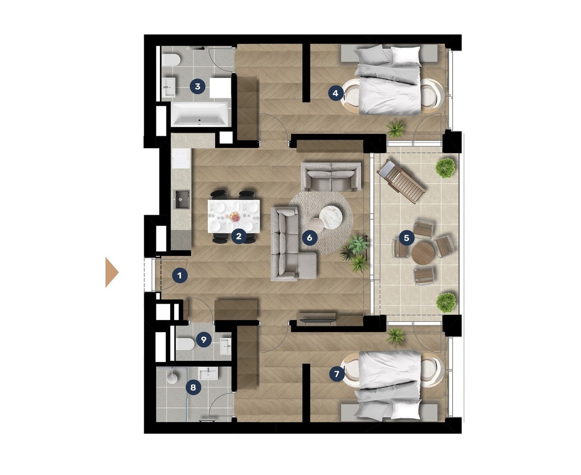 | 5. Loggia | 12.1 m2 |