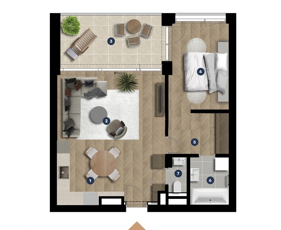 Az adatlapon megjelölt alaprajzi méretek vakolatlan falak közötti méretek, a kivitelezés során kismértékű méretváltozás lehetséges. Ezen dokumentációban közölt adatok a kiviteli tervek alapján kerültek megállapításra kizárólag tájékoztató jelleggel, nem minősülnek ajánlattételnek. Az alaprajzon feltüntetett bútorok tájékoztató jellegűek, azok rajzi elhelyezése nem feltétlenül tükrözi azok jövőbeni elhelyezhetőségét, illetve azok nem képzik a lakás részét.