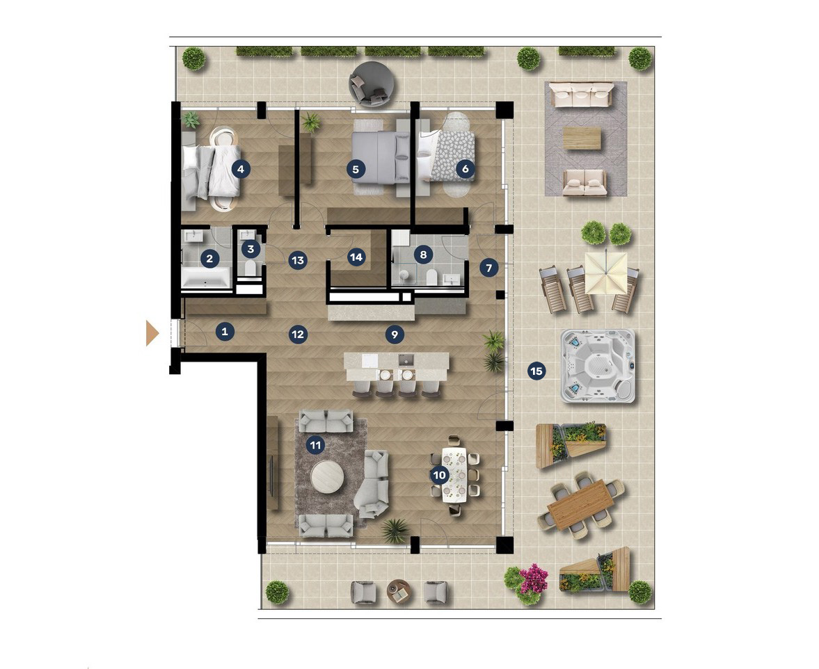 Az adatlapon megjelölt alaprajzi méretek vakolatlan falak közötti méretek, a kivitelezés során kismértékű méretváltozás lehetséges. Ezen dokumentációban közölt adatok a kiviteli tervek alapján kerültek megállapításra kizárólag tájékoztató jelleggel, nem minősülnek ajánlattételnek. Az alaprajzon feltüntetett bútorok tájékoztató jellegűek, azok rajzi elhelyezése nem feltétlenül tükrözi azok jövőbeni elhelyezhetőségét, illetve azok nem képzik a lakás részét.