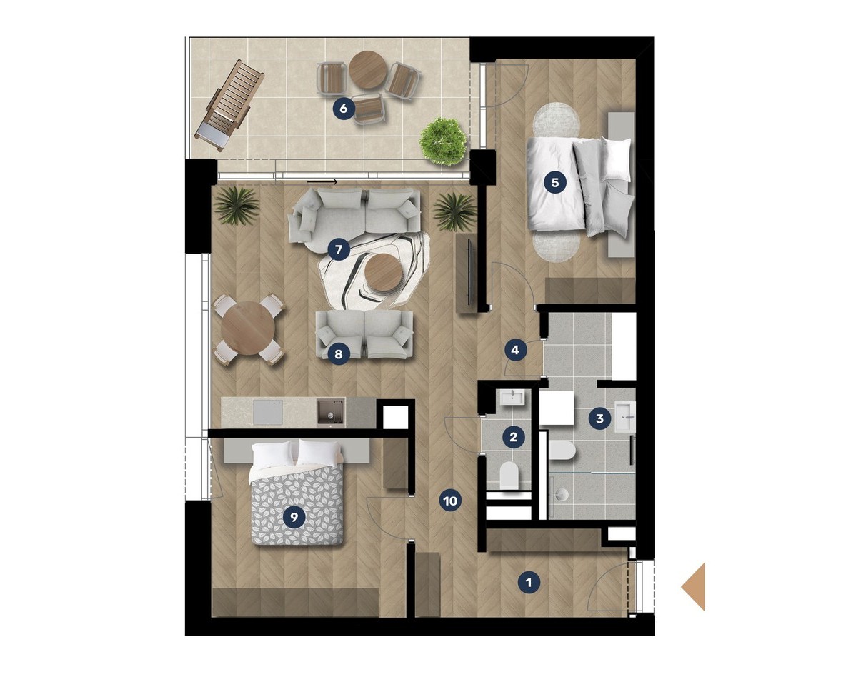 Az adatlapon megjelölt alaprajzi méretek vakolatlan falak közötti méretek, a kivitelezés során kismértékű méretváltozás lehetséges. Ezen dokumentációban közölt adatok a kiviteli tervek alapján kerültek megállapításra kizárólag tájékoztató jelleggel, nem minősülnek ajánlattételnek. Az alaprajzon feltüntetett bútorok tájékoztató jellegűek, azok rajzi elhelyezése nem feltétlenül tükrözi azok jövőbeni elhelyezhetőségét, illetve azok nem képzik a lakás részét.