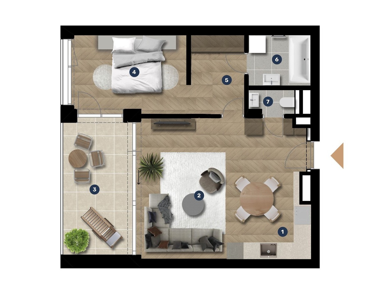 Az adatlapon megjelölt alaprajzi méretek vakolatlan falak közötti méretek, a kivitelezés során kismértékű méretváltozás lehetséges. Ezen dokumentációban közölt adatok a kiviteli tervek alapján kerültek megállapításra kizárólag tájékoztató jelleggel, nem minősülnek ajánlattételnek. Az alaprajzon feltüntetett bútorok tájékoztató jellegűek, azok rajzi elhelyezése nem feltétlenül tükrözi azok jövőbeni elhelyezhetőségét, illetve azok nem képzik a lakás részét.