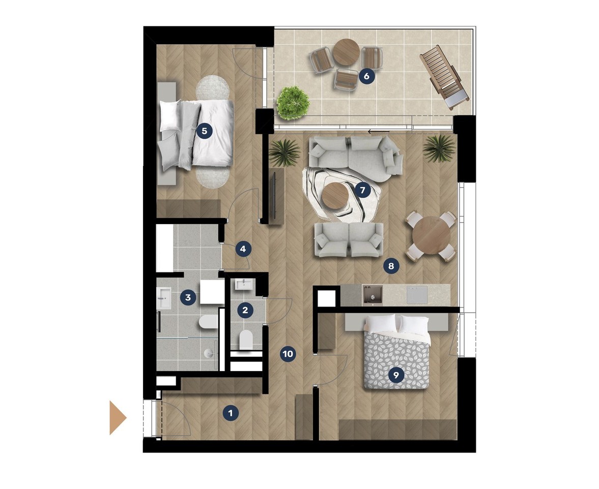 Az adatlapon megjelölt alaprajzi méretek vakolatlan falak közötti méretek, a kivitelezés során kismértékű méretváltozás lehetséges. Ezen dokumentációban közölt adatok a kiviteli tervek alapján kerültek megállapításra kizárólag tájékoztató jelleggel, nem minősülnek ajánlattételnek. Az alaprajzon feltüntetett bútorok tájékoztató jellegűek, azok rajzi elhelyezése nem feltétlenül tükrözi azok jövőbeni elhelyezhetőségét, illetve azok nem képzik a lakás részét.